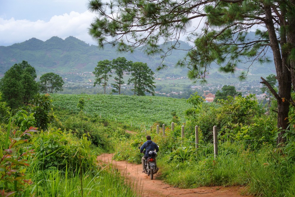 This is going to be a long riding day. Get packed lunch to go in the morning as there are not many places along the way. First you will drive to Naungcho along the main road and from Nyaungcho head down south towards Taunggyi and Inle Lake. This road had been paved only couple years ago and until now sees very limited use, so most of the way will be just to ourselves. After scenic gorge with the river and serpentine road you will ride through some forested hills, and then through the rare Shan and Danu villages. Near Intaw we pass a reservoir lake on the way. Further from this point the landscape is quite flat with some mountains in the distance. Short distance before reaching Taunggyi we can visit Ayethayar vineyard which is situated on the mountain slopes just beneath the town.